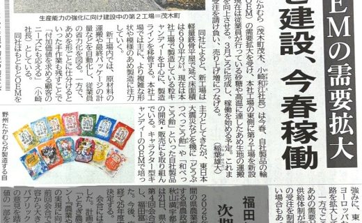 野州たかむら 第2工場新設「下野新聞」に掲載...
